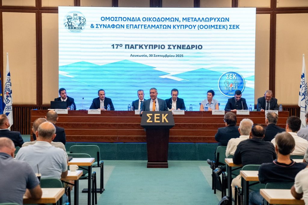 Το ισχυρό αυτό μήνυμα έστειλε ο Γενικός Γραμματέας της Ομοσπονδίας Οικοδόμων ΣΕΚ Στέλιος Τσιαπουτής από το βήμα του 17ου Παγκύπριου Συνεδρίου που πραγματοποιήθηκε τη Τρίτη 30 Σεπτεμβρίου στο οίκημα της ΣΕΚ στον Στρόβολο.